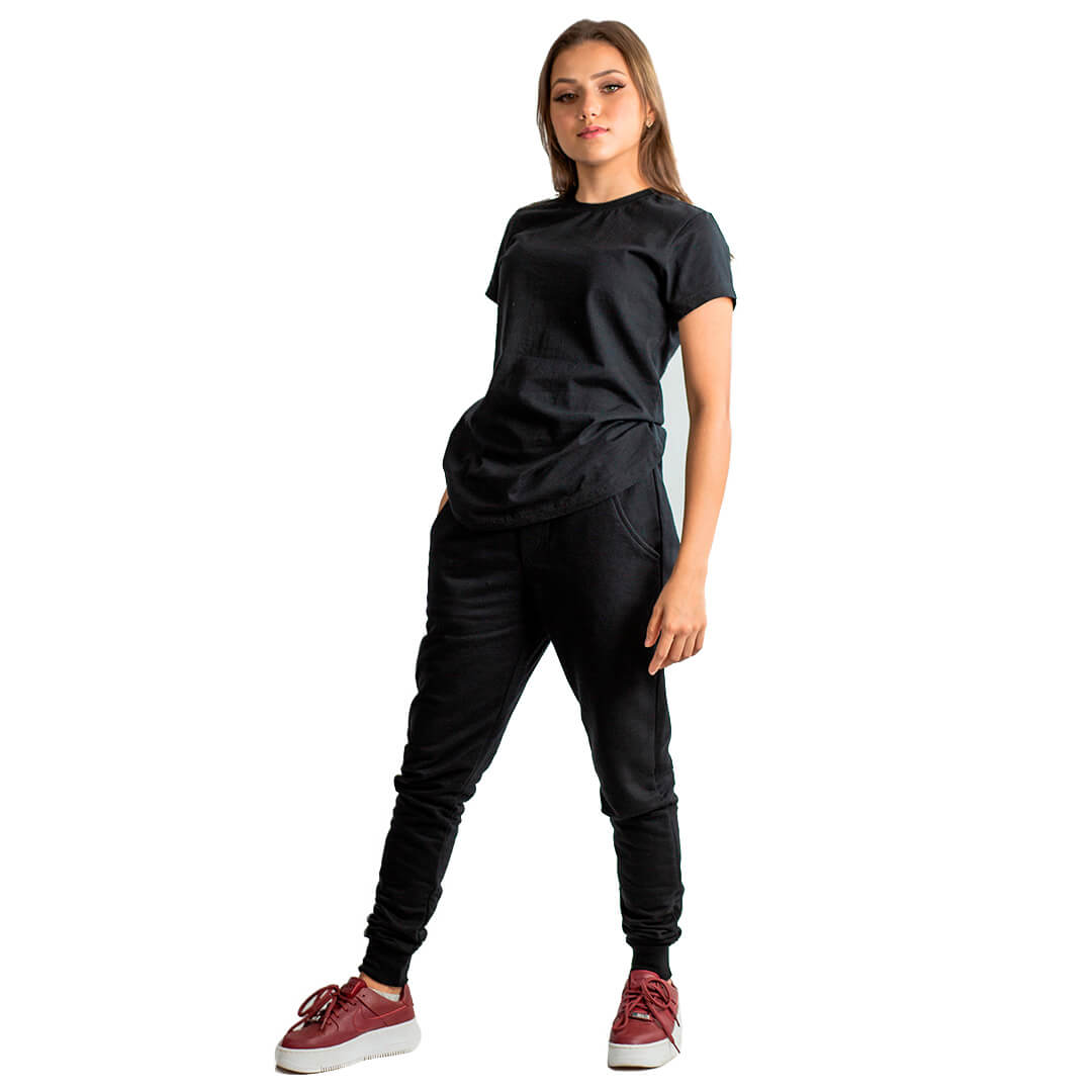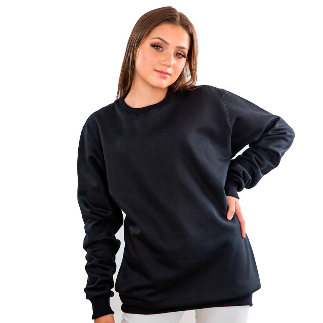 Modelo Unissex, com possibilidades de acabamento em tecido ou ribana.